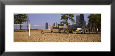 Panoramic Images Art > Group Of People Playing Beach Volleyball, Chicago, Illinois, Usa Art Print
