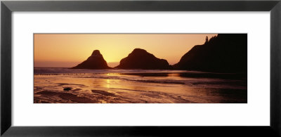 Panoramic Images Art > Silhouette Of Rocks At Sunset, Heceta Head Lighthouse, Devils Elbow State Park, Oregon, Usa Art Print