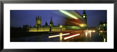 Panoramic Images Art > Traffic Moving In The Night, Houses Of Parliament, London, England Art Print