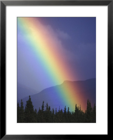Paul Nicklen Art > Rainbow Arching Through Clearing Skies Over Evergreen Forest, Alaska Art Print