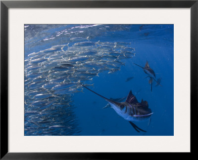 Paul Nicklen Art > Sailfish Hunt Sardines Using Their Bills And Sails To Corner The Fish Art Print