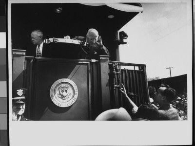 Peter Stackpole Art > President Harry S. Truman Cupping His Hand Over One Ear To Hear Question From Crowd Art Print