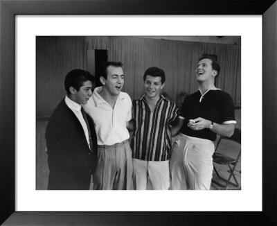 Peter Stackpole Art > Singing Heartthrobs Paul Anka, Bobby Darin, Frankie Avalon And Pat Boone Singing Art Print