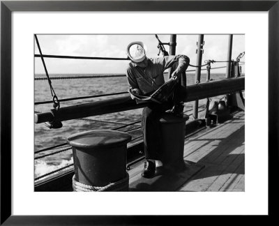Ralph Morse Art > Sailor Relaxing Aboard A Us Navy Cruiser At Sea While Reading A Copy Of Life Magazine During Wwii Art Print