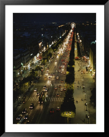 Raul Touzon Art > An Elevated View Of A Traffic-Filled Paris Street At Night Art Print