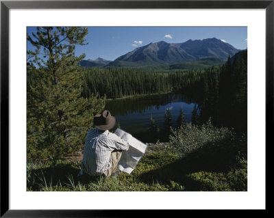 Raymond Gehman Art > A Man With A Cowboy Hat Reads A Map And Gazes Across A River Art Print