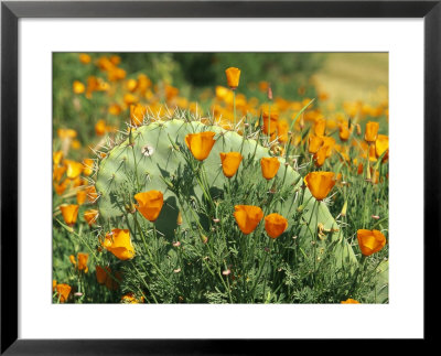Rich Reid Art > California Poppies Surround A Prickly Pear Cactus Art Print