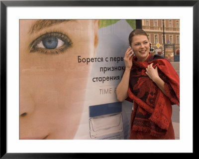 Richard Nowitz Art > A Woman Uses A Mobile Phone While Waiting At A Bus Stop Art Print