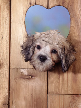 Richard Stacks Art > Puppy With Its Head Out Of Heart Shaped Window Art Print