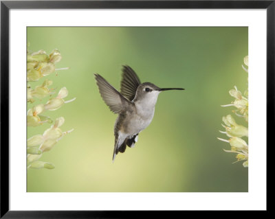 Rolf Nussbaumer Art > Black-Chinned Hummingbird In Flight Feeding On Texas Buckeye, Uvalde County, Hill Country Art Print