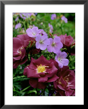 Ron Evans Art > Rosa (Rose) Rhapsody In Blue With Geranium (Cranesbill) Art Print