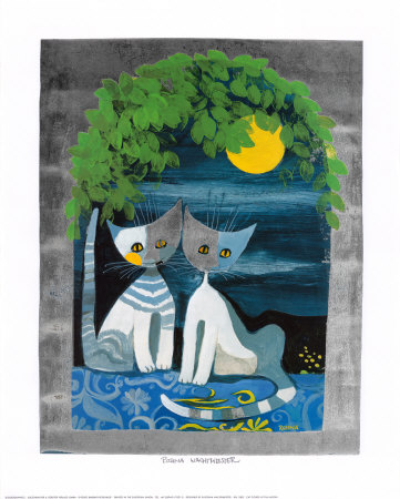 Rosina Wachtmeister Art > Cat Couple At Full Moon Art Print