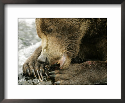 Roy Toft Art > Alaskan Brown Bear, Close-Up Of Bear Eating Salmon, Alaska Art Print