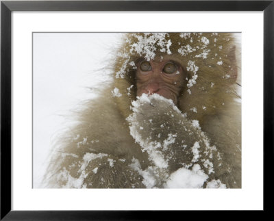 Roy Toft Art > Big-Eyed, Snow-Covered Baby Snow Monkey (Macaca Fuscata) Art Print