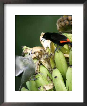 Roy Toft Art > Palm Tanager And Scarlet-Rumped Tanager, Two Birds Fighting On Bananas, Osa Peninsula, Costa Rica Art Print