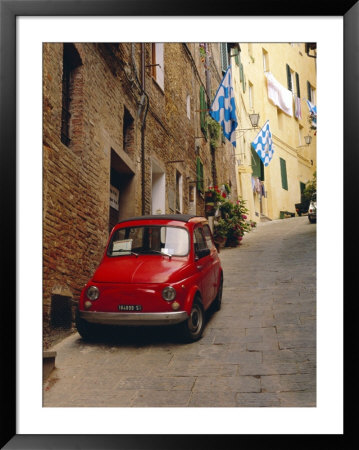 Ruth Tomlinson Art > Red Car Parked In Narrow Street, Siena, Tuscany, Italy Art Print