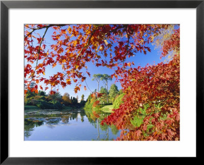 Ruth Tomlinson Art > Sheffield Park Garden, The Middle Lake Framed By Scarlet Acer Leaves, Autumn, East Sussex, England Art Print