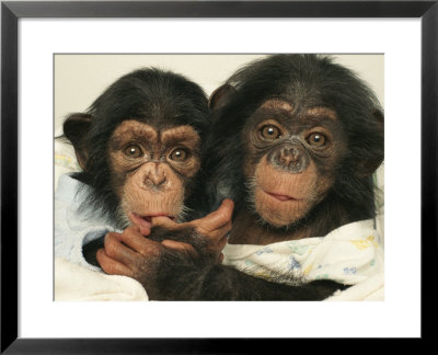 Steve Winter Art > Portrait Of Two Young Laboratory Chimps Used In Aids Research Art Print