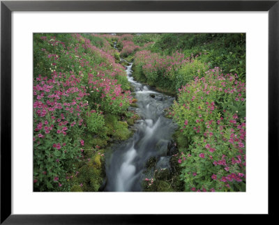Stuart Westmoreland Art > Pink Monkey Flower Near Mountain Stream, Mt. Rainier National Park, Washington, Usa Art Print