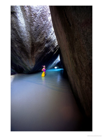 Stuart Westmoreland Art > Snorkeler In Cathedral Rocks, The Baths National Park, British Virgin Islands Art Print