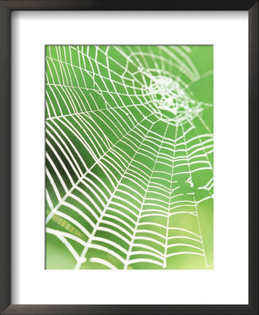 Sunniva Harte Art > Spiders Web With Morning Dew, Threads Illuminated & Look White Against Green Backdrop Art Print