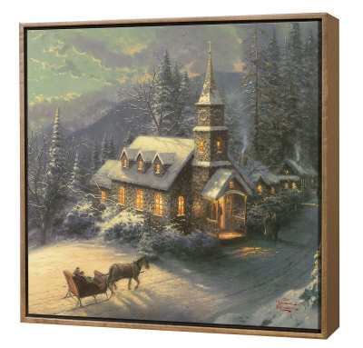 Thomas Kinkade Art > Sunday Evening Sleigh Ride - Framed Fine Art Print On Canvas - Wood Frame Art Print