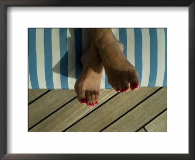 Todd Gipstein Art > Woman's Feet On A Striped Cushion On The Deck Of A Cruise Ship Art Print
