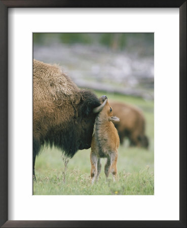 Tom Murphy Art > A Female Bison Stands Patiently As Her Young Calf Plays With Her Horns Art Print