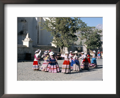 Tony Waltham Art > Girls In Traditional Local Dress Dancing In Square At Yanque Village, Colca Canyon, Peru Art Print