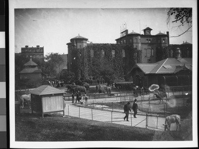 Wallace G. Levison Art > Panoramic View Of People Strolling Through The Central Park Zoo, Near The Elephant And Camel Pens Art Print
