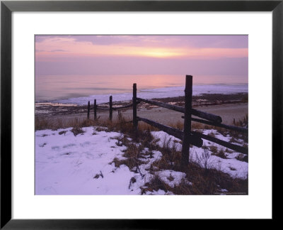 Willard Clay Art > Sunrise Over A Split-Rail Fence Along Lake Michigan, Door County, Usa Art Print