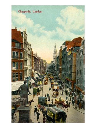 William Mulready Art > London, Cheapside, Late 19Th Century With Horse Drawn Buses And Carriages Art Print