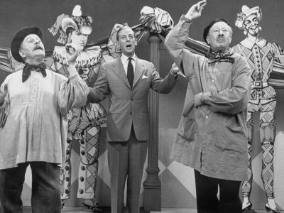 Yale Joel Art > Actors Bobby Clark And Bert Lahr Rehearsing With Alistair Cooke On Set Of Viva Art Print